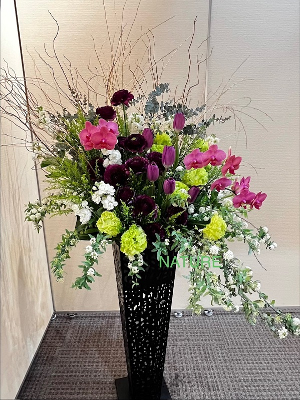 先日、中嶋玉華先生主催の『土筆の会』という『かな』の書道展の活けこみのご依頼をいただき、会場にお花を飾らせていただきました。